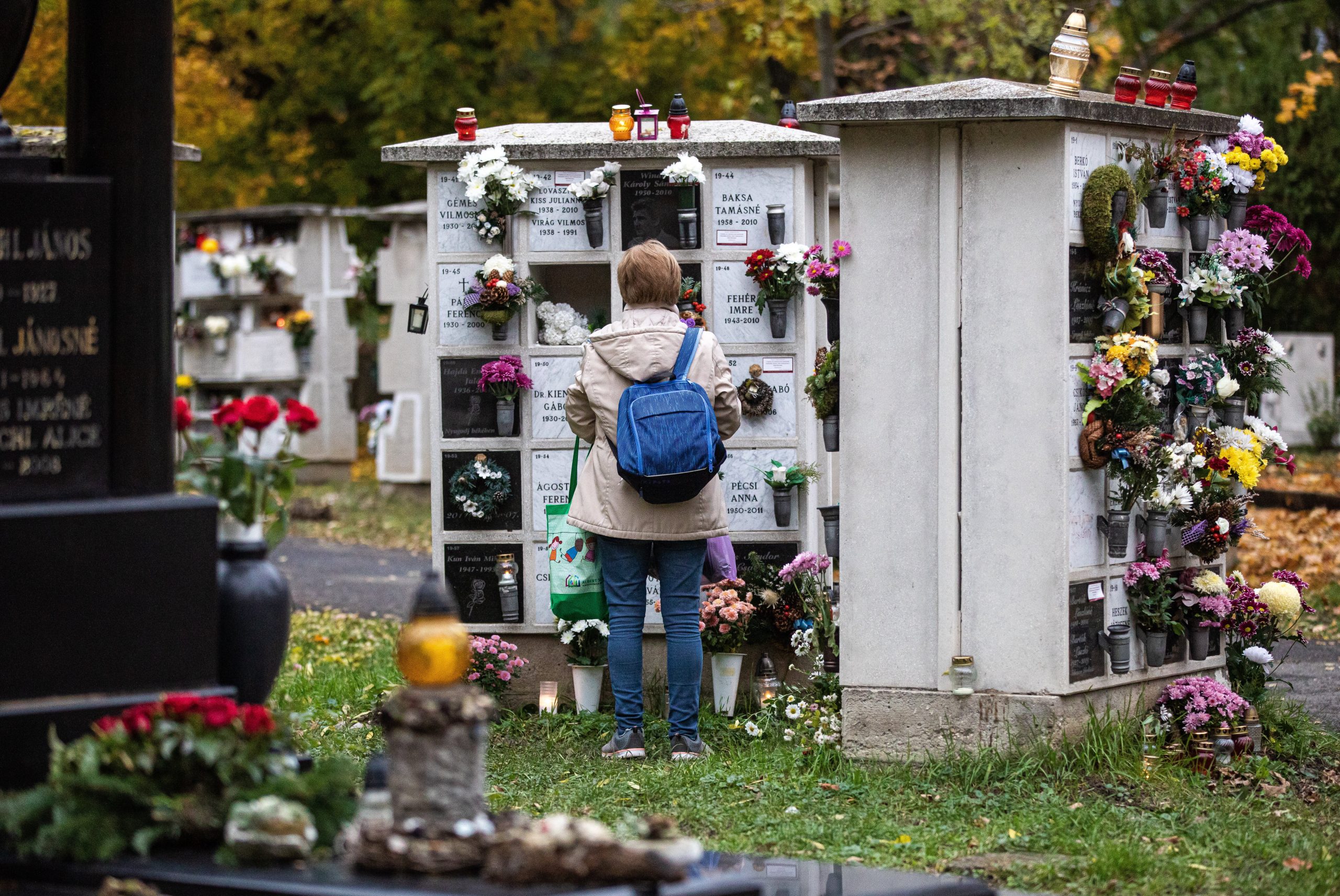 Látogató az óbudai temetőben a közelgő mindenszentek ünnepe és halottak napja előtt, 2020. október 30-án (Fotó: MTI/Mohai Balázs)A rítus gyógyító ereje a gyászban